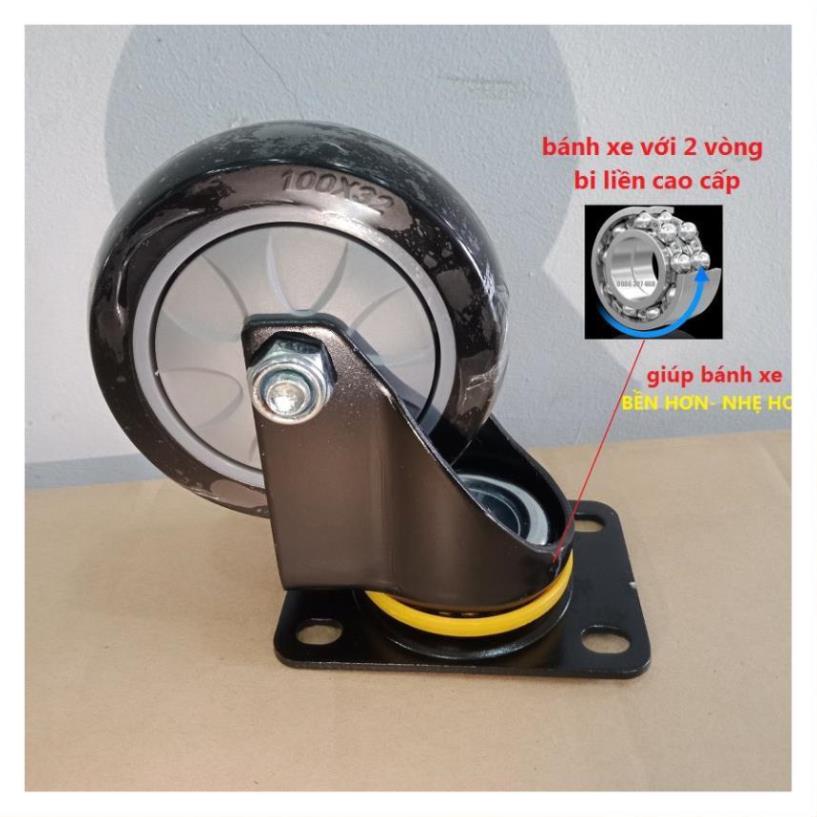 - Bánh xe bằng bạc đạn kín giúp đẩy êm, nhẹ và bền hơn, gồm bánh thường và bánh cao cấp
