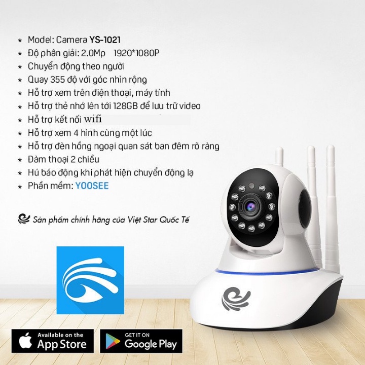 [FREESHIP]Camera Wifi 3 Anten Yoosee I YS-1021- Camera Trong Nhà YS-1021 Xoay Theo Chuyển Động 360