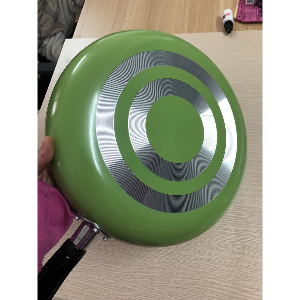 Bề mặt chảo có màu xanh tươi tắn được sơn tĩnh điện cao cấp, chịu nhiệt tốt, mang đến bộ bền cao và khả năng chống xước hiệu quả giúp chảo nhìn như mới sau 1 thời gian sử dụng