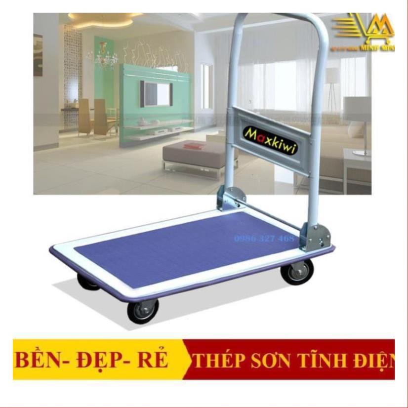 [FreeShip - Clip thật] Xe, Xe Đẩy Hàng 4 Bánh Maxkiwi- Sàn Thép, Tay Đẩy Gập Gọn