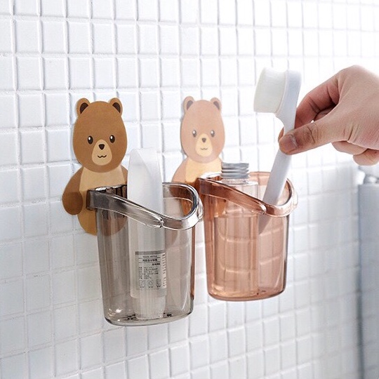 Nhà cửa & Đời sống > Đồ dùng phòng tắm > Kệ đựng bàn chải, kệ nhả kem đánh răng || [FREESHIP❤️] Cốc Gấu Dán Tường Để Bàn Chải Đánh Răng Hình Gấu Có Lỗ Thoát Nước Tiện LợiCòn hàng