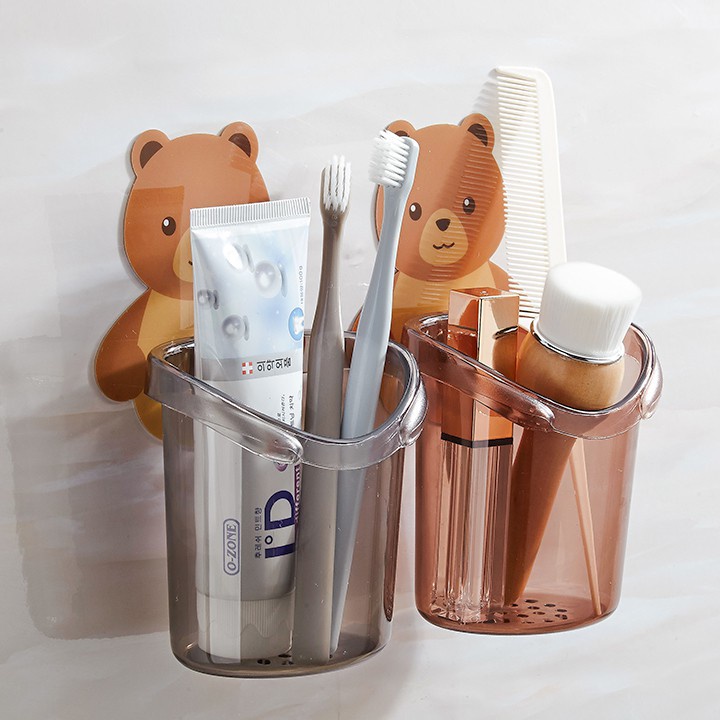 Giới thiệu [FREESHIP] Cốc gấu đựng bàn chải kem đánh răng, Cốc gấu dán tường siêu dính