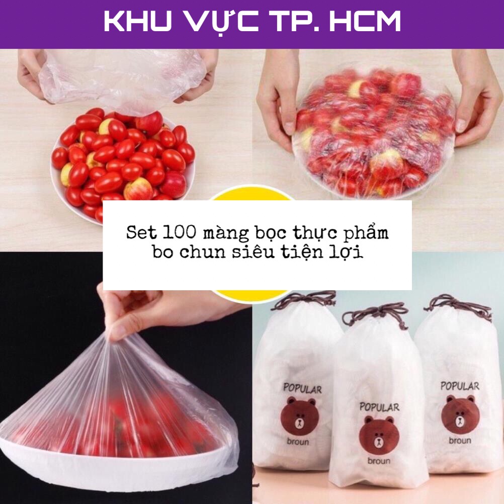 [FreeShip] Combo 100 màng bọc thực phẩm, túi bọc thực phẩm nilong có chun co giãn, tái sử dụng