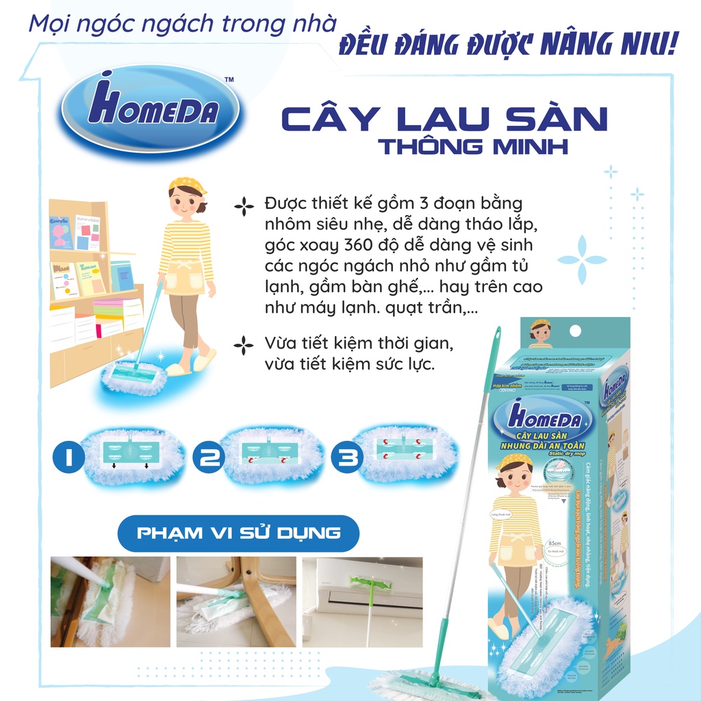 Nhà cửa & Đời sống > Dụng cụ chăm sóc nhà cửa > Khăn vệ sinh || [FREESHIP] Combo Lau Dọn Tĩnh Điện iHomeDa 1 Cây Lau + 1 Chổi + 5 Gói Khăn Ướt Cao Cấp + 1 Gói Miếng Rửa Chén*AramoMart*Còn hàng