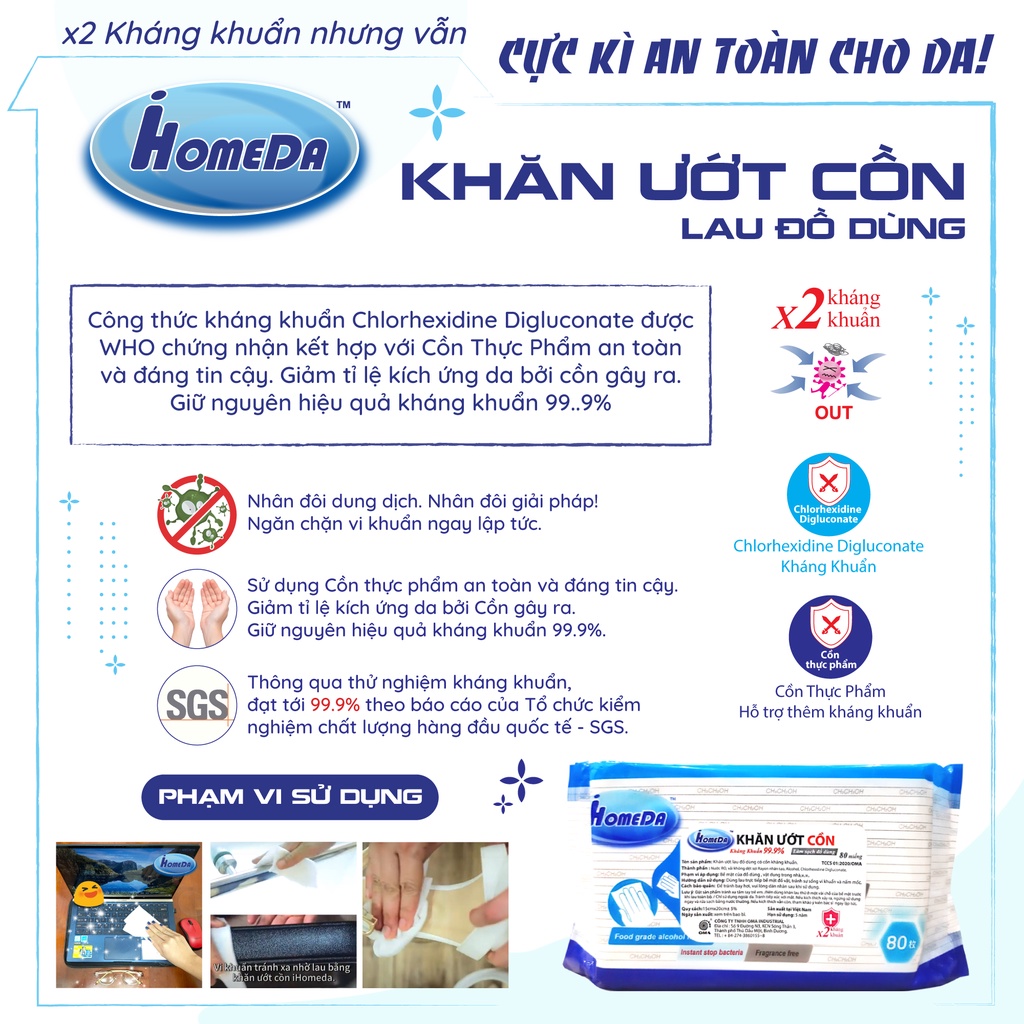 🌈 1 gói khăn ướt cồn kháng khuẩn cao cấp iHomeda (80 miếng) 69k