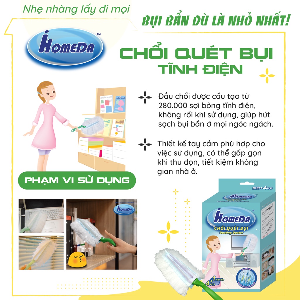 [FREESHIP] Combo Lau Dọn Tĩnh Điện iHomeDa 1 Cây Lau + 1 Chổi + 5 Gói Khăn Ướt Cao Cấp + 1 Gói Miếng Rửa Chén*AramoMart*