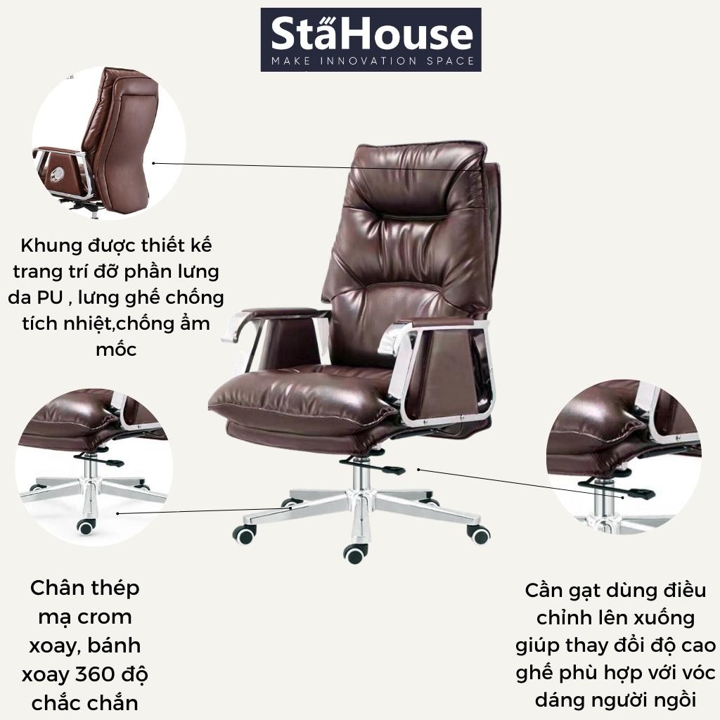 [FREESHIP-DA CAO CẤP] Ghế Giám Đốc Da Cao Cấp ngả lưng đệm da siêu êm sang trọng GD33 Stahouse
