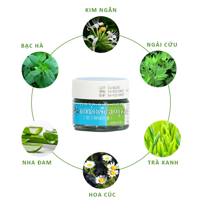 Yan hee Mosquito Brand Thai Green Balm có bảng thành phần khá phức tạp với chiết xuất từ nhiều loại thảo dược thông qua chế biến công phu. Đây là loại dầu thoa ngoài da có tác dụng cực ổn trong việc chấm dứt cảm giác ngứa ngáy, khó chịu do sâu bọ cắn hoặc muỗi đốt.