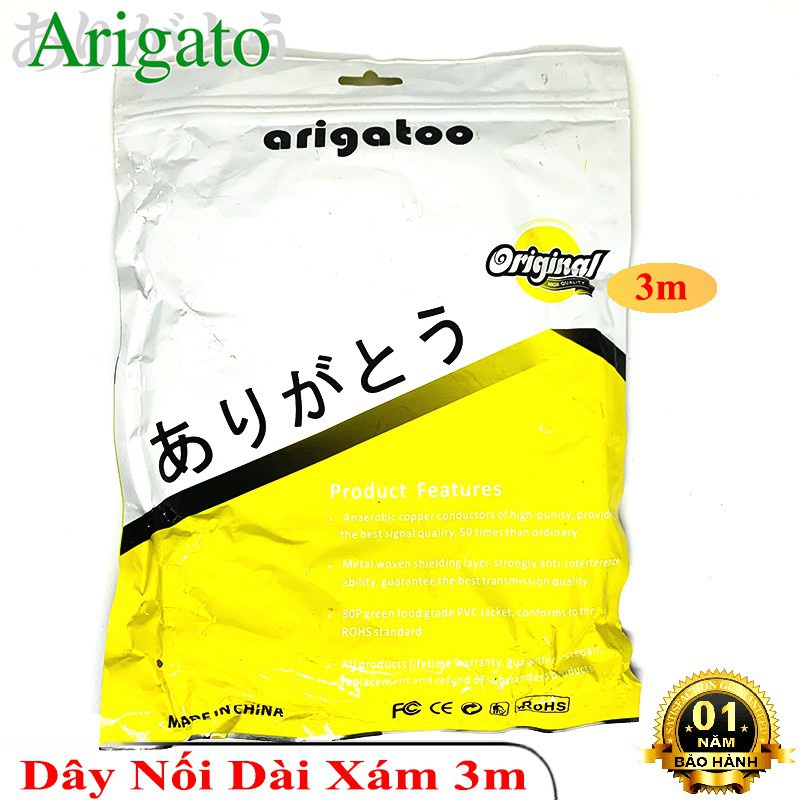[Freeship] Dây Nối Dài Usb 3m Chống Nhiễu Arigato Màu Xám, Hàng Chính Hãng. Chất Lượng Cao