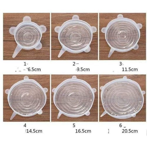 Bộ 6 nắp silicon gồm 6 kich cỡ khác nhau đáp ứng nhu cầu bảo quản thực phẩm của gia đình bạn. Nắp silicon có độ co giãn cao, vừa khít trên tô , chén, dĩa của gia đình nhà bạn