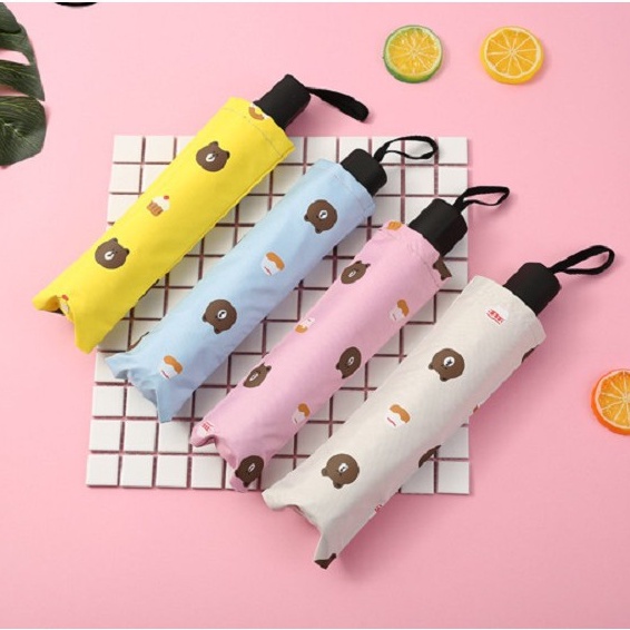 Ô DÙ ĐI MƯA GẤP GỌN HÌNH GẤU BROWN gấp gọn họa tiết gấu bắt mắt hình gấu brown có 3 màu cho bạn lựa chọn
