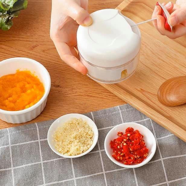 - Dụng cụ xay tỏi ớt sử dụng lực kéo bằng tay nhẹ nhàng nhưng rất hiệu quả.