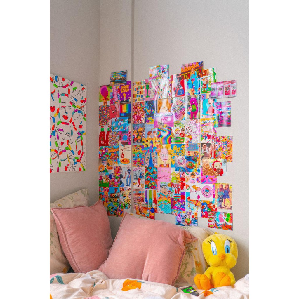 8 tấm in hình khác nhau (ngẫu nhiên, kèm băng dính) với theme nhiều màu siêu sặc sỡ giúp căn phòng của bạn biến thành mọt câu truyện cổ tích siêu sống động, tràn ngập màu sắc. Tinh thần của bạn chắc chắn sẽ nhận lên gấp bội khi bước vào căn phòng của mình😋