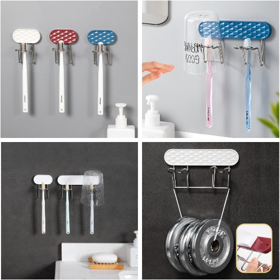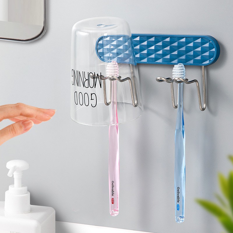 🍅Gía lưu trữ bàn chải đánh răng và cốc với kẹo cao su trên móc trở lại, giữ cho chúng sạch sẽ và khô ráo.