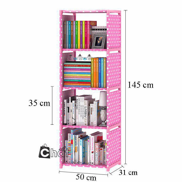 - Kệ 5 Tầng Đa Năng Lắp Ghép Chấm Bi Hồng được thiết kế nhiều tầng nhưng nhỏ gọn chắc chắn giúp bạn sắp xếp gọn gàng các quyển sách, tài liệu hay các vật dụng khác