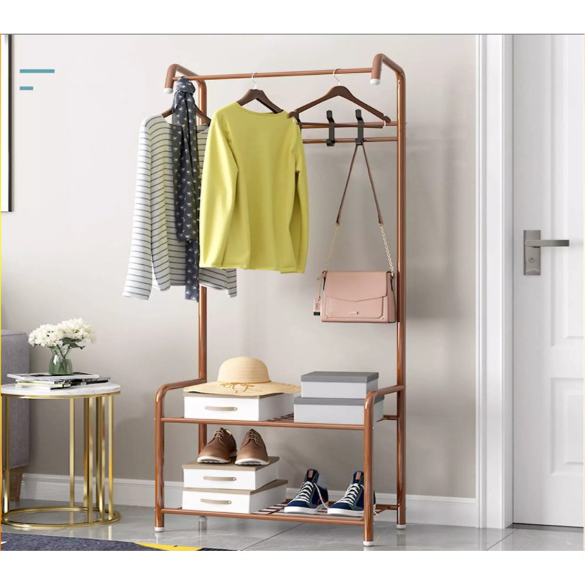 Kệ Treo Quần Áo Chữ L Có Giá Để Đồ 2 Tầng