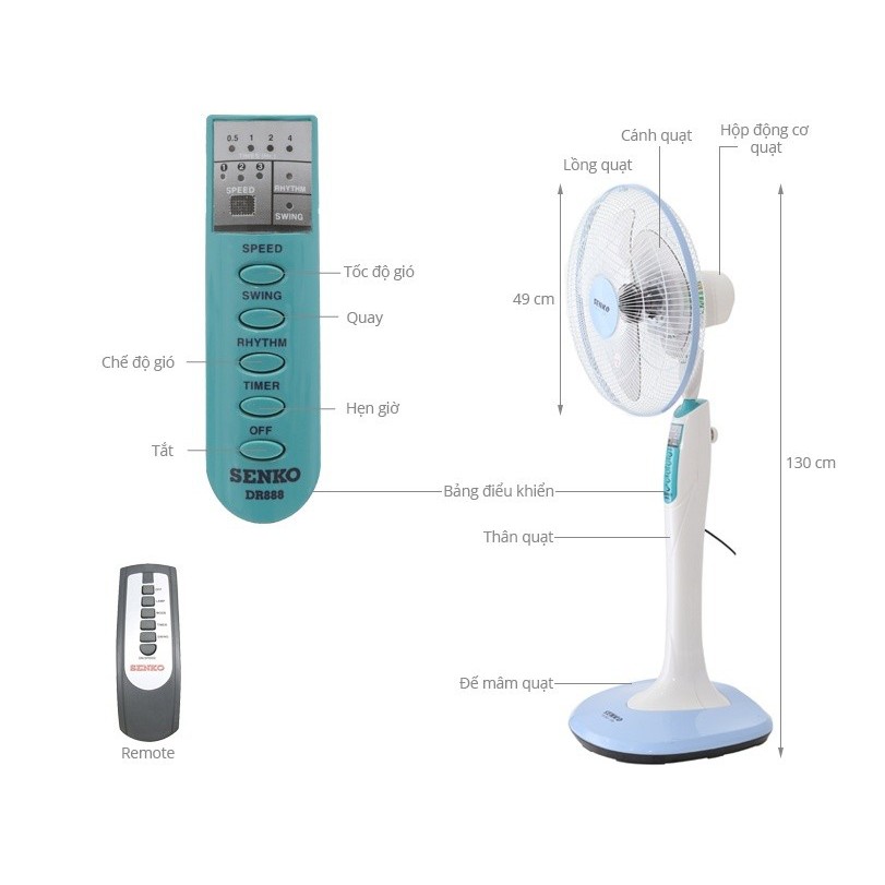 [FREESHIP Giảm 20k cho đơn 599k] Quạt Đứng Có Remote Điều Khiển Từ Xa Senko DR1608 - Bảo Hành 2 năm