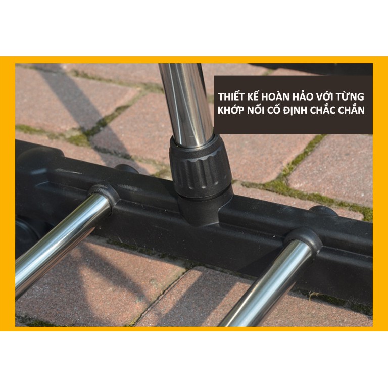 Sản phẩm sau khi lắp đặt sẽ có cấu trúc gồm 2 thanh phơi được thiết kế song song trên dưới, giúp quần áo khô nhanh chóng. Dưới chân có 2 thanh chắn song song để bạn có thể kết hợp phơi giày, dép.