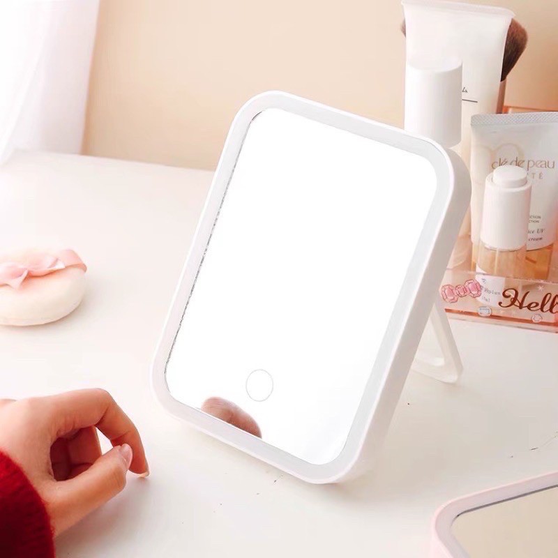[FREESHIP] GƯƠNG LED CẢM ỨNG HÌNH CHỮ NHẬT,GƯƠNG ĐỂ BÀN TRANG ĐIỂM 3 CHẾ ĐỘ SÁNG,PHONG CÁCH VINTAGE HÀN QUỐC