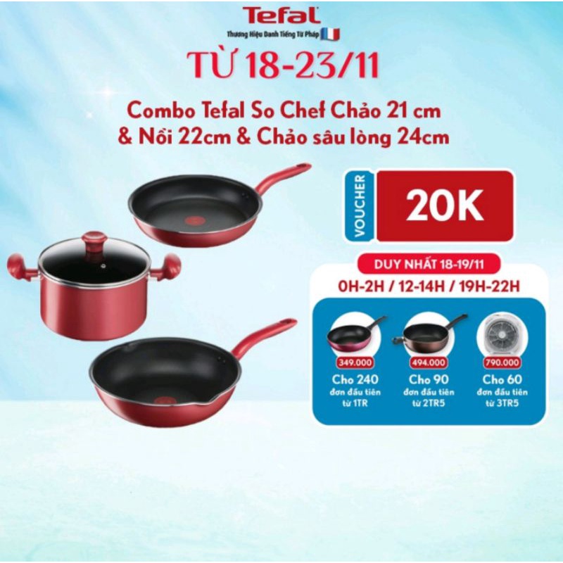 Nhà cửa & Đời sống > Dụng cụ nhà bếp > Nồi || {FREESHIP HA NOI} Combo Tefal So Chef Chảo chiên 21cm & Nồi 22cm & Chảo chiên sâu lòng 24cmCòn hàng
