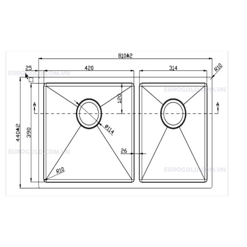 - Dòng sản phẩm được thiết kế 2 hố: Hố lớn có kích thước chiều ngang*chiều dài*chiều sâu là 42*39*22 ( cm ), hố nhỏ tương tự có kích thước 31,4*39*22 ( cm ) giúp người dùng có thể phân chia rõ ràng các mục đích sử dụng.