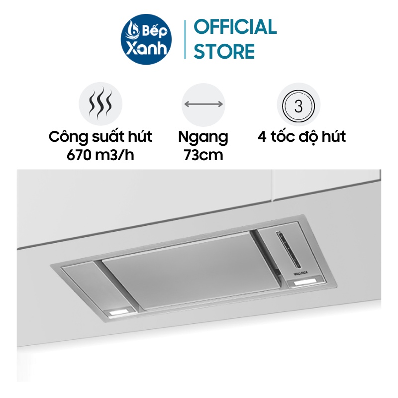 Giới thiệu [Mã ELMALL7 giảm 7% đơn 5TR] [FREESHIP HCM] Máy Hút Mùi Âm Tủ Malloca Hidden K-730 - Ngang 73cm - Công Suất Hút 670m3/h