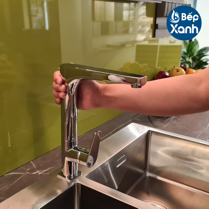 Khả năng xoay 360 độ là điểm cộng lớn trong thiết kế của sản phẩm. Nhờ đó, bạn có thể thoái mái xoay cổ vòi để lấy nước ở nhiều tư thế khác nhau, thuận tiện cho việc rửa chén và rửa rau củ quả.