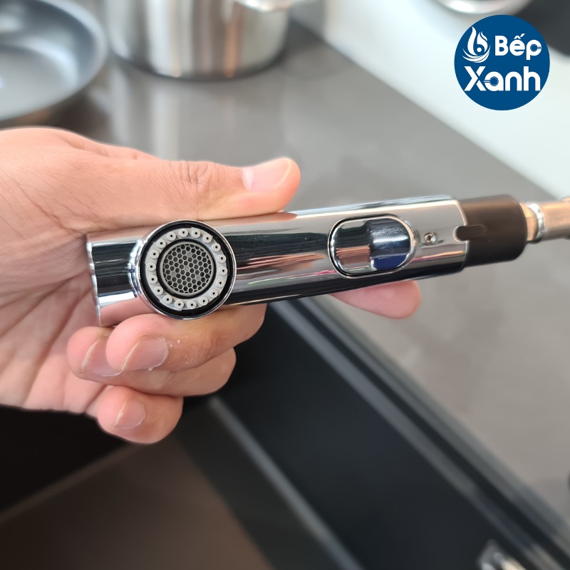 Ngay bên dưới đầu vòi rửa bát là bộ xả nước với lưới lọc nhiều lớp, ngăn được rong rêu, cát sỏi, bụi bẩn,... có kích thước cực nhỏ. Bên cạnh đó, bộ lọc còn giúp nước xả ra nhẹ nhàng và êm ái, không bị văng ra ngoài ảnh hưởng đến trải nghiệm người dùng.