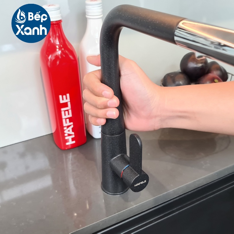 Để giúp bận nhận biết đường nước và thao tác gạt chính xác, Hafele ký hiệu màu đỏ (nước nóng) và xanh (nước lạnh) ngay tại phần cần gạt.