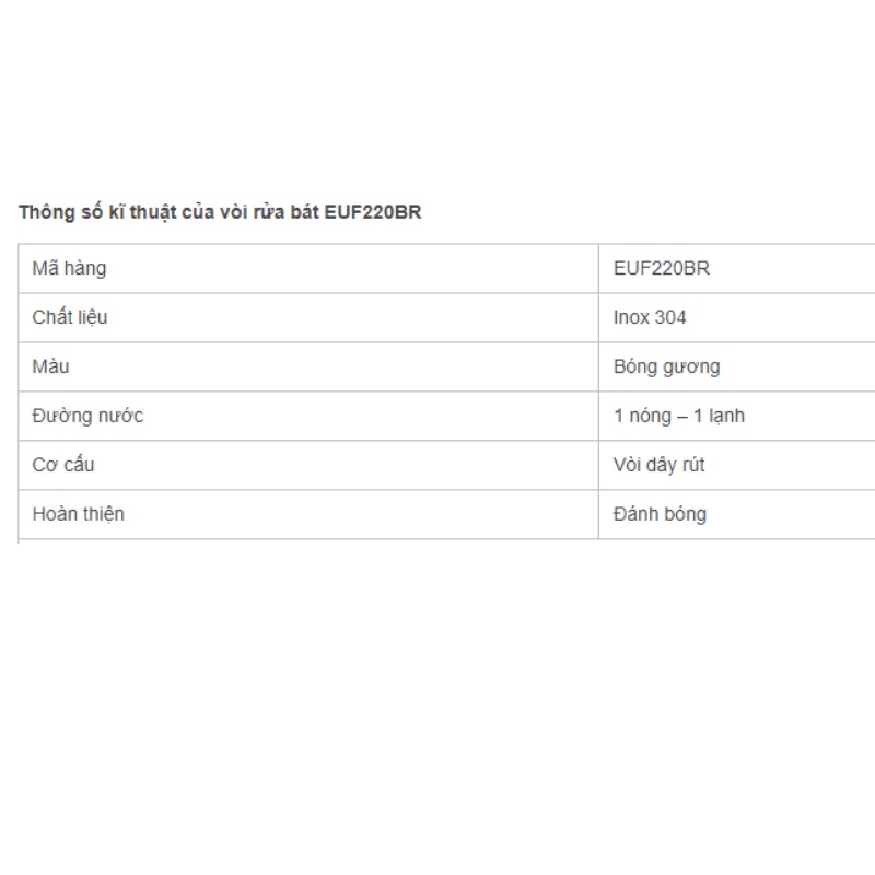 Thông số kĩ thuật của vòi rửa bát EUF220BR