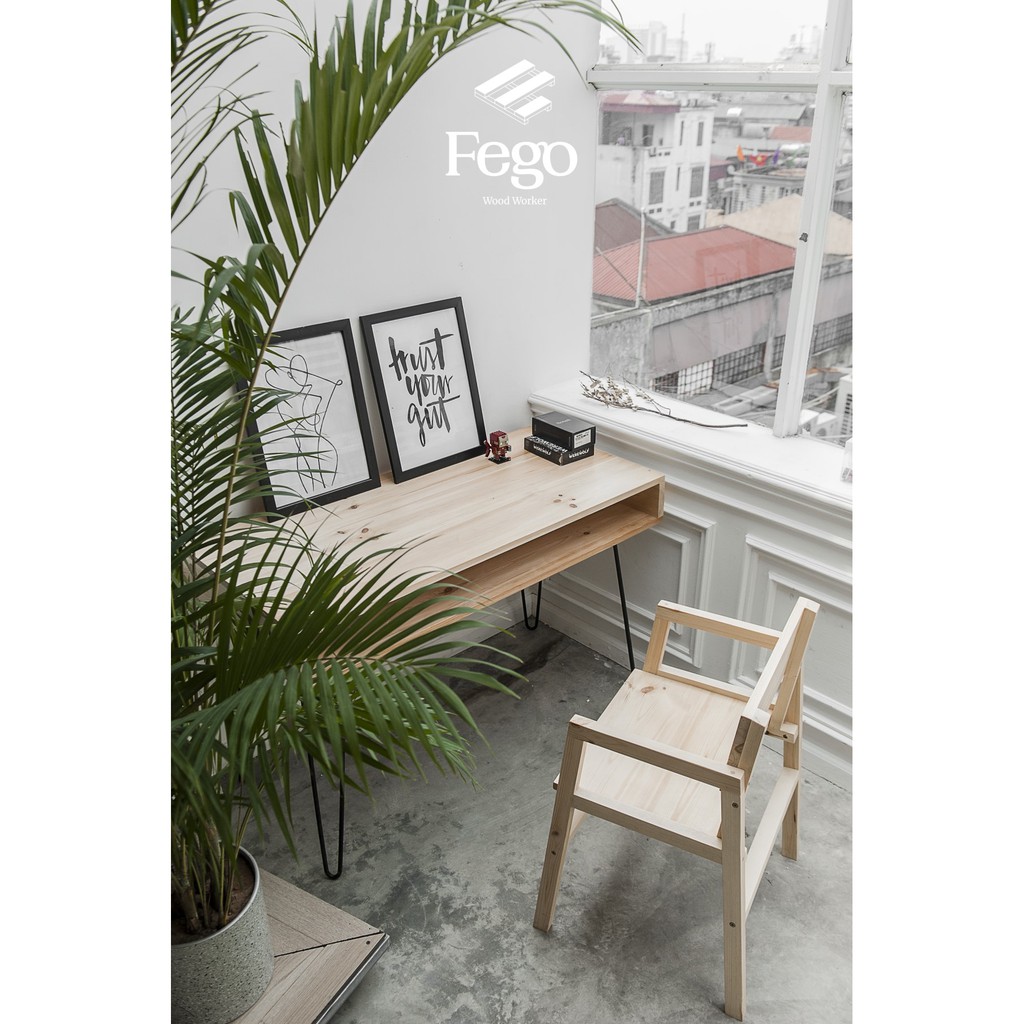 Giới thiệu [Freeship HN] Bàn làm việc có ngăn chân sắt hairpin/ Bàn gỗ thông tự nhiên FEGO