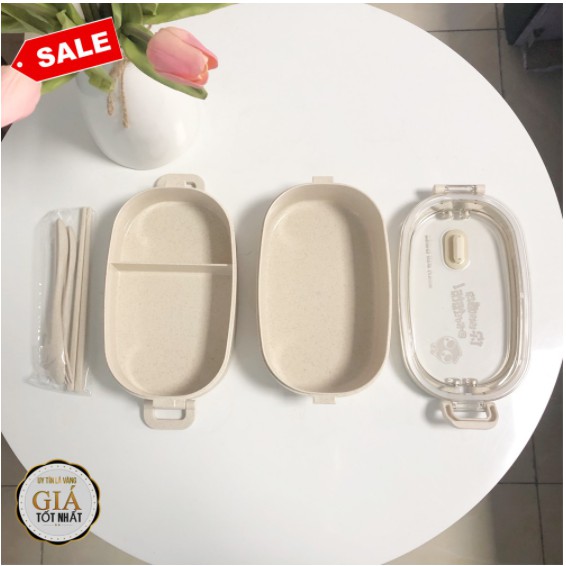 [FREESHIP❤️] HỘP CƠM LÚA MẠCH 2 TẦNG KÈM BỘ ĐŨA THÌA