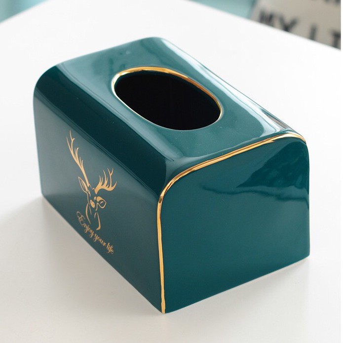 ❤️ FREESHIP❤️ Hộp Đựng Giấy Ăn Đặt Bàn Gốm Sứ Cao Cấp, Phong Cách Bắc Âu Với Bộ Hươu Quý Tộc