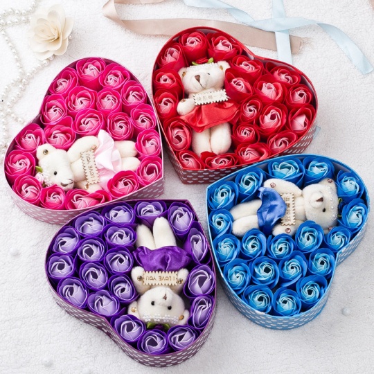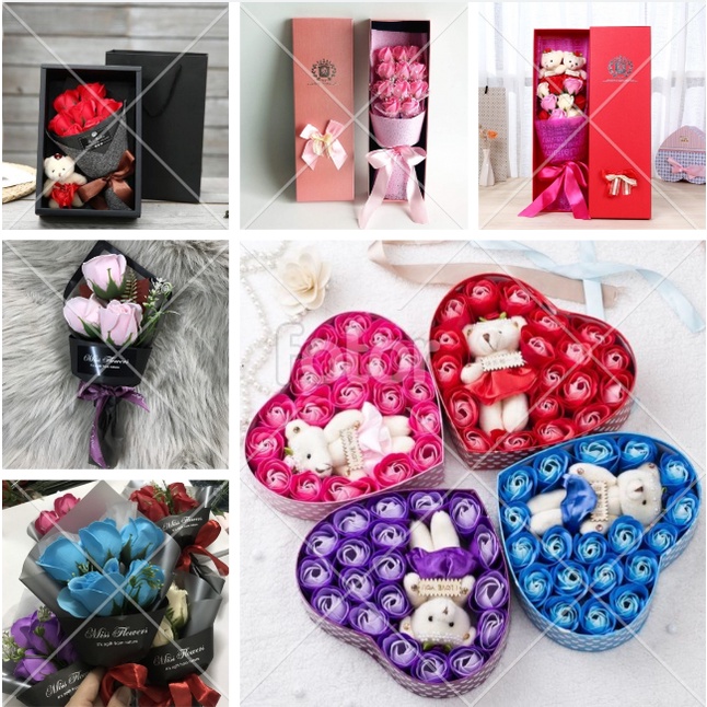 [FREESHIP ] HỘP HOA HỒNG SÁP 7 BÔNG CÓ GẤU - 9 BÔNG 2 GẤU - MISS 3 - 7 BÔNG - TRÁI TIM 17 BÔNG