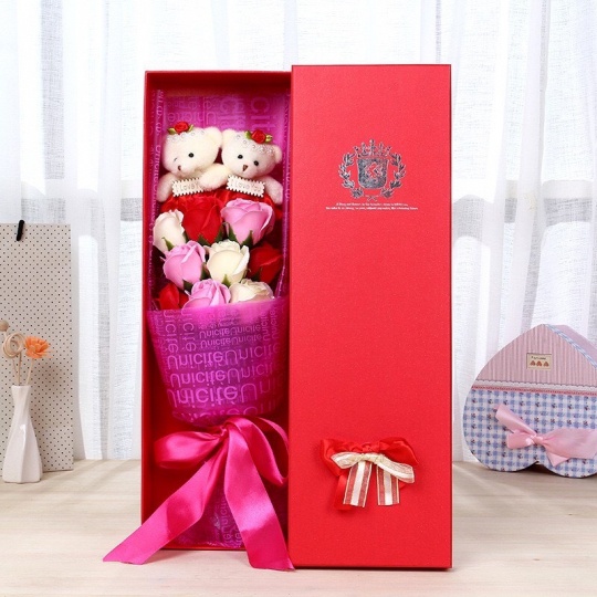 Hộp hoa hồng sáp 9 bông 2 gấu