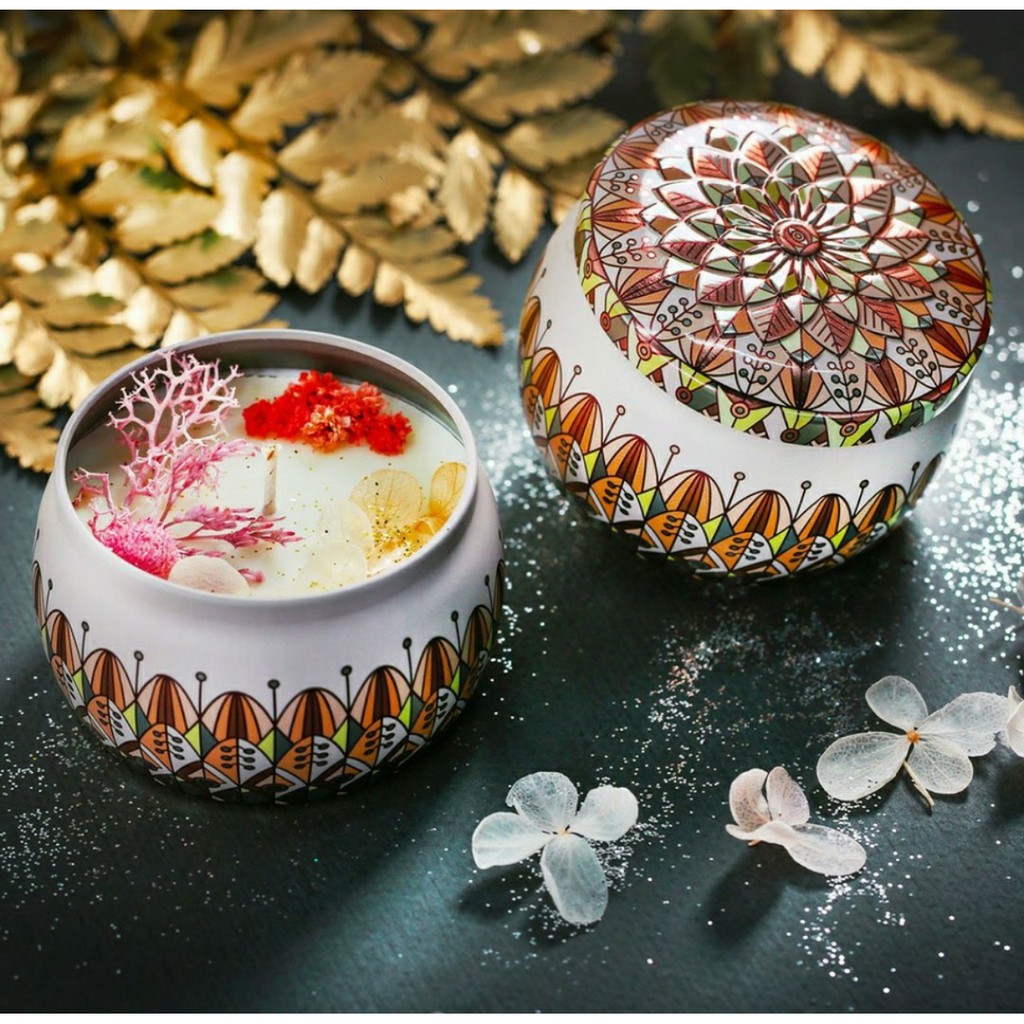 Nhà cửa & Đời sống > Trang trí nhà cửa > Nến & đồ đựng nến || [FREESHIP] Hộp Nến Thơm Hoa Khô Thiên Nhiên - Hộp Thiếc hoa văn làm thơm phòngCòn hàng