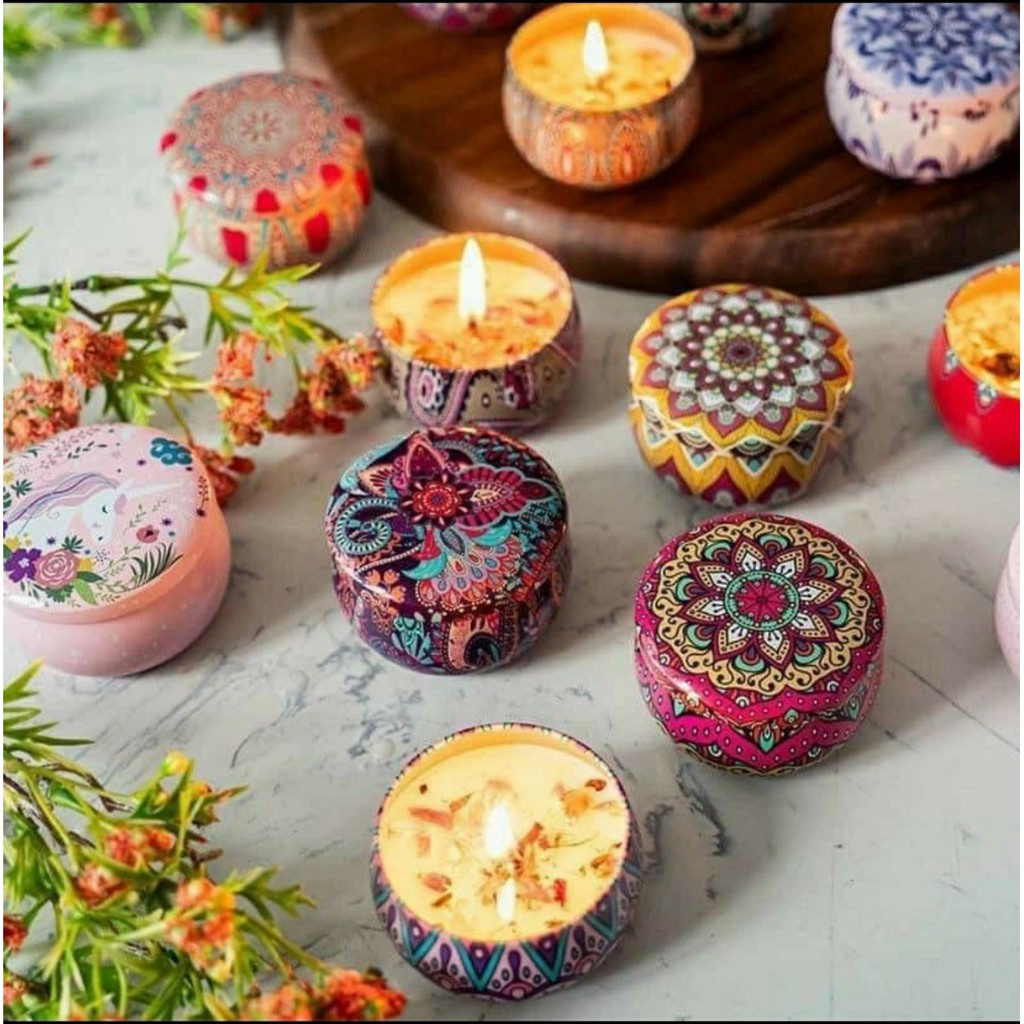 [FREESHIP] Hộp Nến Thơm Hoa Khô Thiên Nhiên - Hộp Thiếc hoa văn làm thơm phòng