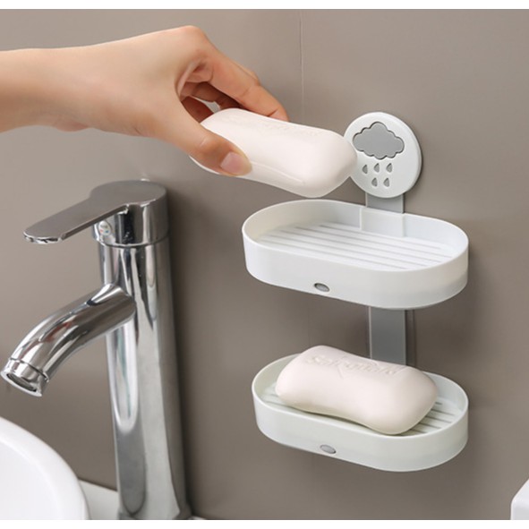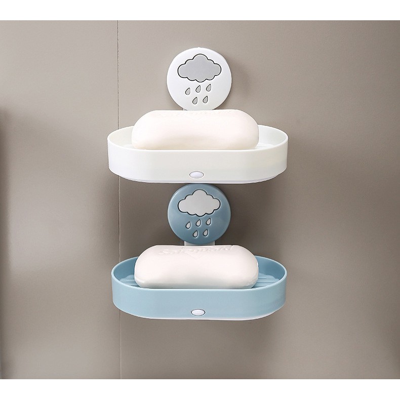Khay đựng xà phòng 2 tầng dán tường đa năng hình đám mây mưa - Khay nhựa thoát nước - Không cần khoan tường - Kệ để xà bông nhà vệ sinh nhà tắm