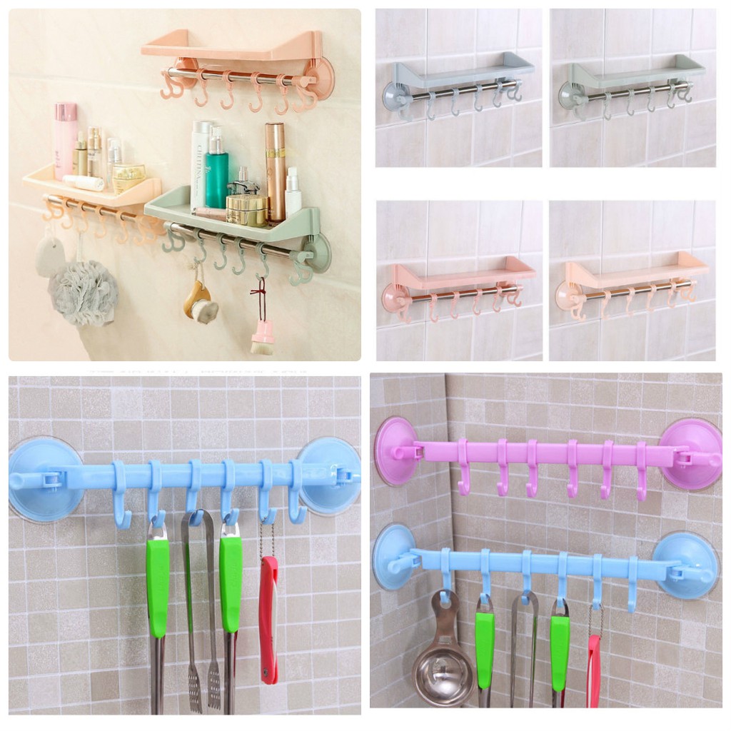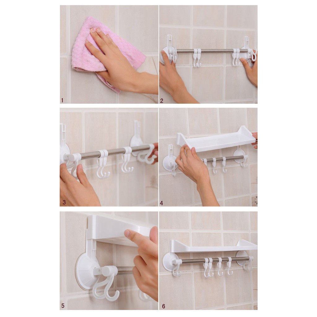 Giới thiệu [FREESHIP] KỆ NHỰA HÍT ĐỂ VẬT DỤNG NHÀ TẮM KÈM 6 MÓC