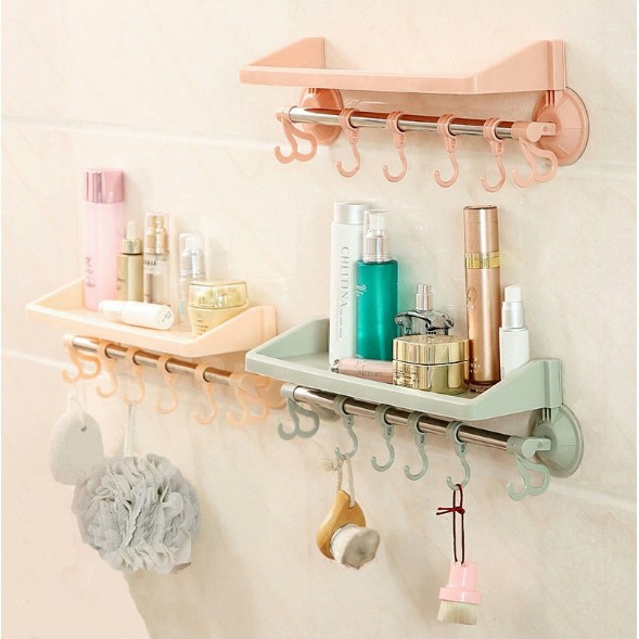 [FREESHIP] KỆ NHỰA HÍT ĐỂ VẬT DỤNG NHÀ TẮM KÈM 6 MÓC