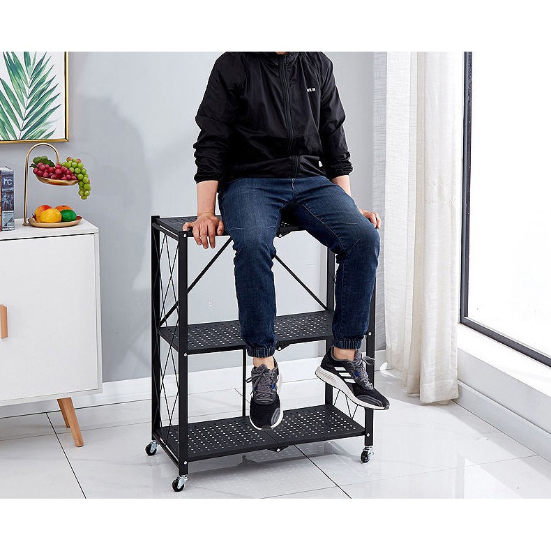 Kích thước kệ gấp gọn phù hợp để đẩy đủ các loại vật dụng từ trong bếp đến đồ dùng phòng khách, phòng ngủúp không gian nhà bạn được gọn gàng ngăn nắp và tiện nghi hơn.