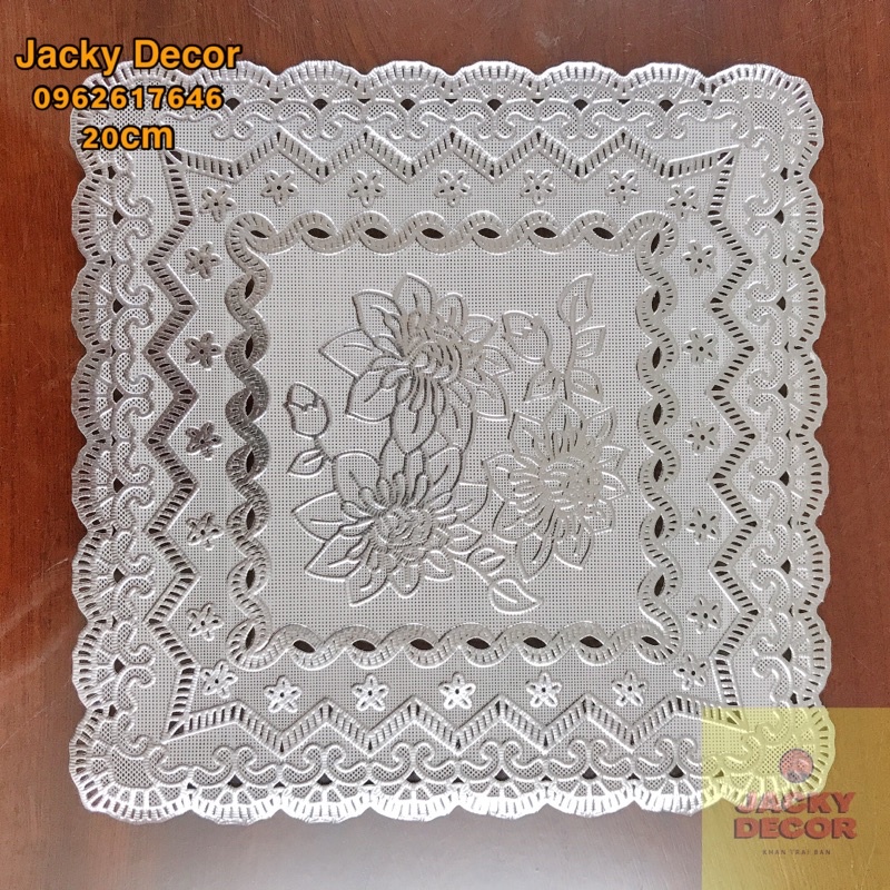 📣📣Khăn trải bàn Ren Hoa Nhựa PVC hình vuông 20x20cm📣📣👉Chất liệu: Khăn được sản xuất trên dây chuyền hiện đại theo công nghệ Nhật Bản, chất liệu PVC, hoa văn trang trí được in nổi 3 chiều, dày dặn.