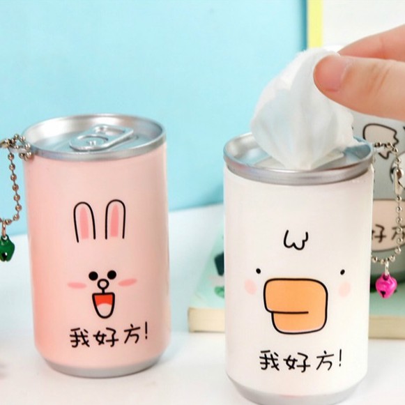 - Dạng lon nước giải khát, có lỗ khui rút khăn giấy ướt rất độc đáo và đáng yêu. Ngoài ra còn kèm theo 1 dây móc khóa có thể móc vào balô hay túi xách để trang trí lun nha. Bên trong gồm 30 miếng khăn ướt sử dụng rất tiện lợi nha.Bật nắp lon để rút khăn ra sử dung. Sau khi dùng hết có thể mở nắp lon ra để thêm khăn giấy vào sử dụng tiếp nè❤️ Ngoài ra iem này còn có thể sử dụng làm móc khoá xe luôn á, siêu kute nhen