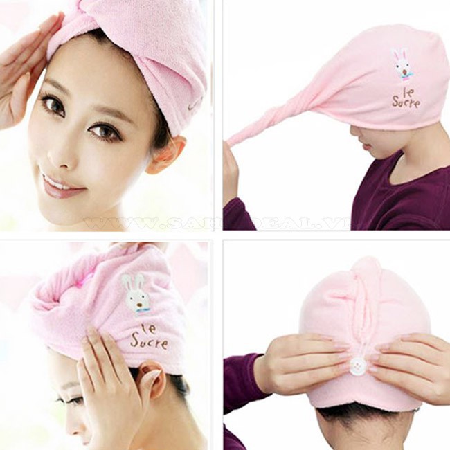 🍀 Khăn được làm bằng chất liệu sợi bông 100%cotton mềm và xốp nên độ thấm hút rất nhanh,gần như gấp 10 lần khăn so với khăn thông thường. ‼️Khăn được thiết kế hình mũ ôm sát đầu và có nút cài tháo dễ dàng, nên rất dễ sử dụng