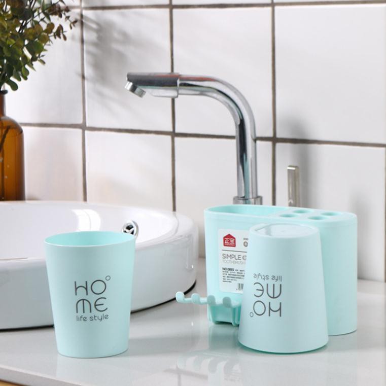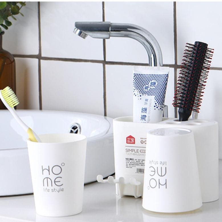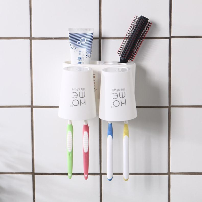 – Thiết kế đa năng gồm 4 lỗ cắm bàn chải và 1 lỗ để kem đánh răng, 2 cốc đánh răng không quai.