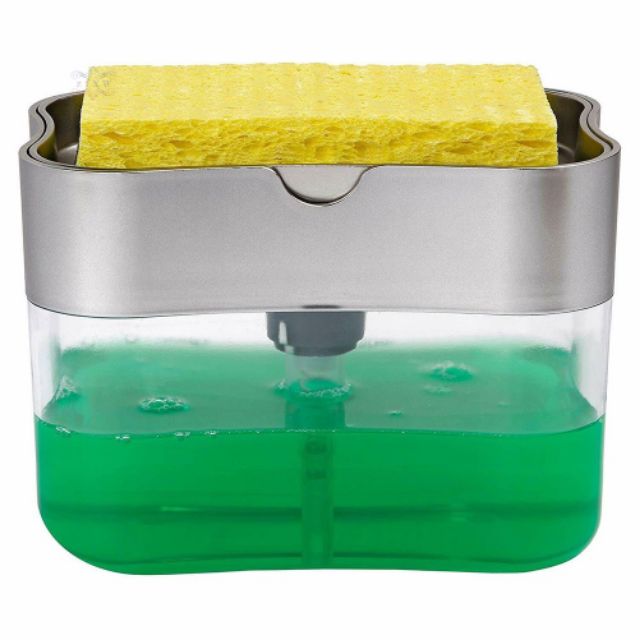 Nhấn xuống tấm trên cùng để lấy xà phòng trực tiếp vào miếng bọt biển