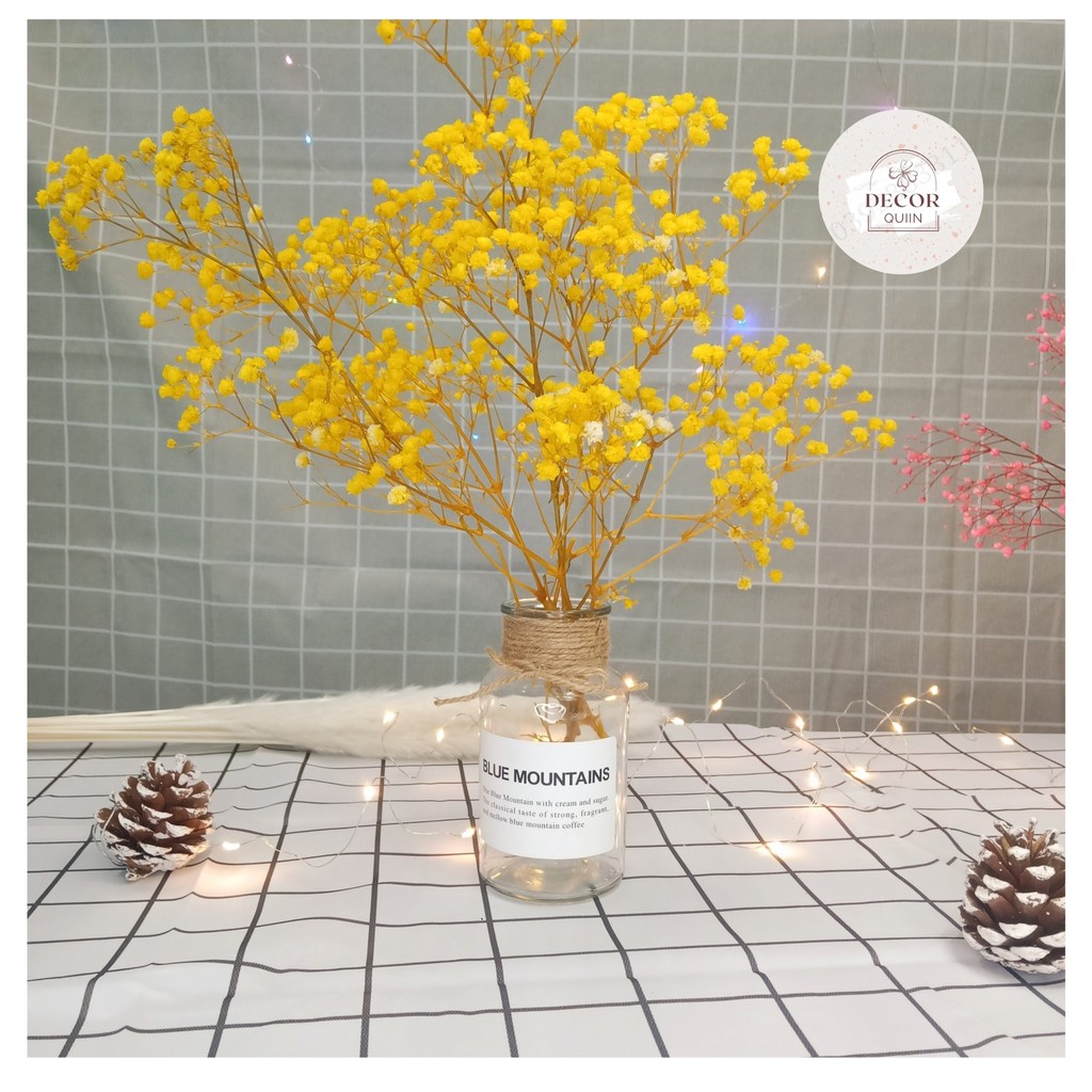 Nhà cửa & Đời sống > Trang trí nhà cửa > Hoa trang trí || [Freeship] Lọ hoa khô để bàn❤️hoa baby khô bất tử kèm stiker và dây gai trang trí bàn học decorCòn hàng