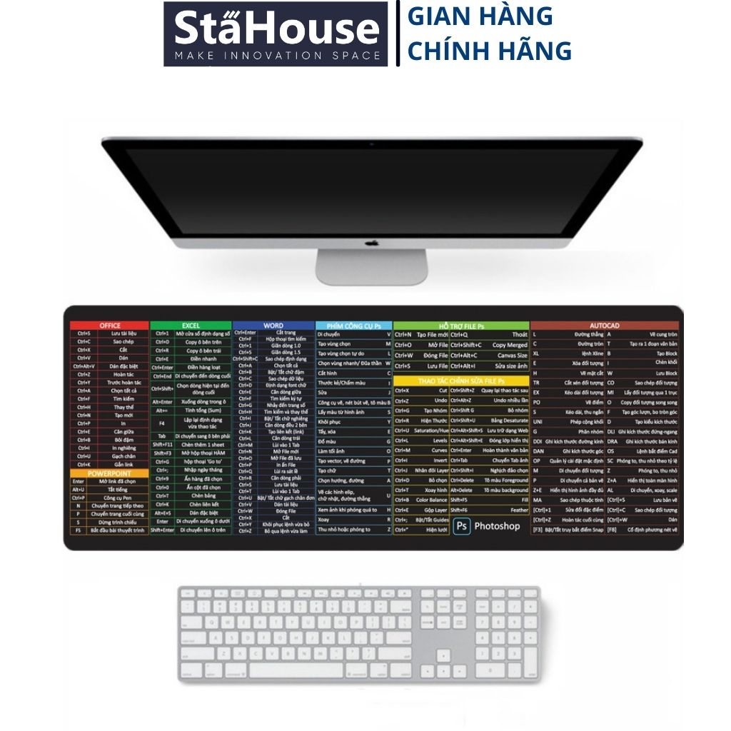 Máy tính & Laptop > Phụ Kiện Máy Tính > Bàn Di Chuột || [FREESHIP]Lót Chuột Phím Tắt Văn Phòng Cỡ Lớn Stahouse, Bàn Di Chuột Cỡ Lớn Pad Chuột TLC102 KT 80X30CmCòn hàng