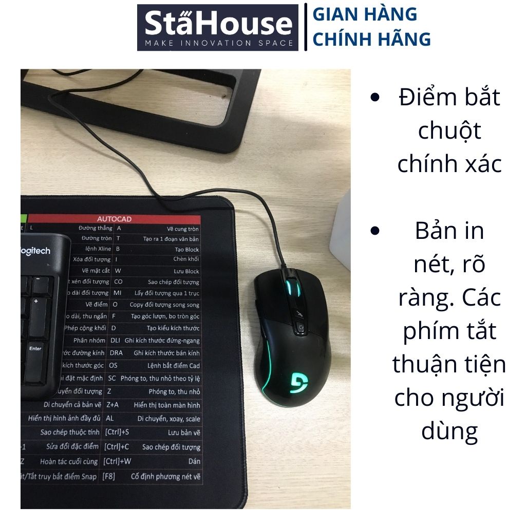 - Bề mặt Lót Chuột Phím Tắt Văn Phòng Cỡ Lớn Stahouse, Bàn Di Chuột Cỡ Lớn Pad Chuột TLC102 KT 80X30Cm được tối ưu hóa chuẩn xác của mắt đọc, tránh tình trạng chậm trễ khi di chuyển ở tốc độ cao. Đảm bảo tính mượt mà khi di chuyển trỏ chuột.
