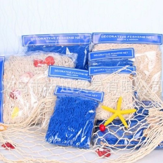 Lưới biển trang trí kèm sò biển tại Lam Decor có 2 màu: Xanh va trắng.Kích thước 1mx2m